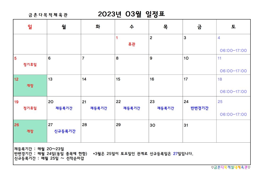 2023년 3월 일정표