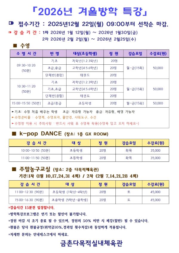 2026년 겨울방학 특강