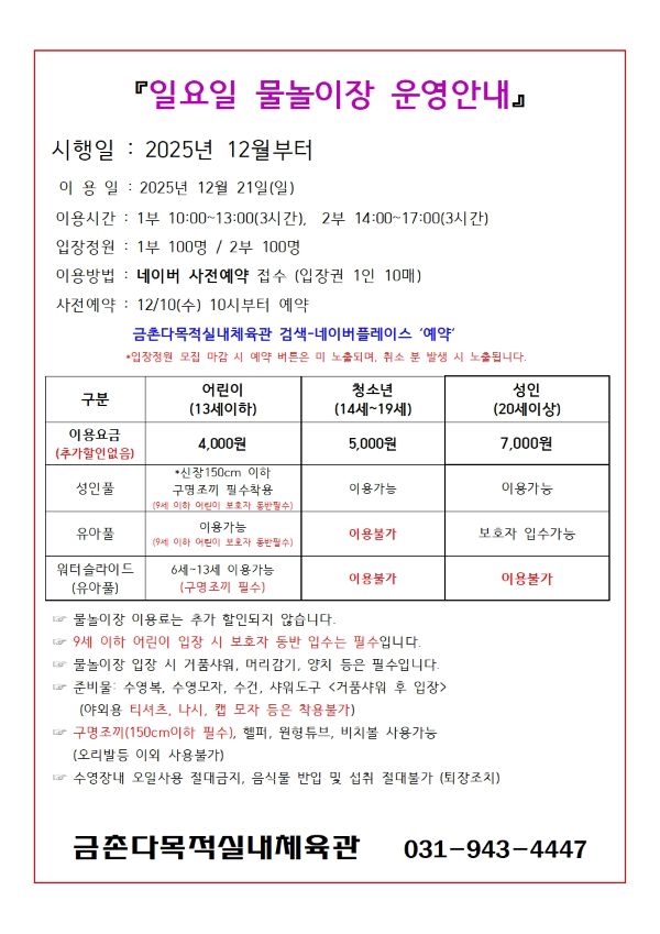 게시글(가족 물놀이장_금촌다목적실내체육관 수영장) 상세내용