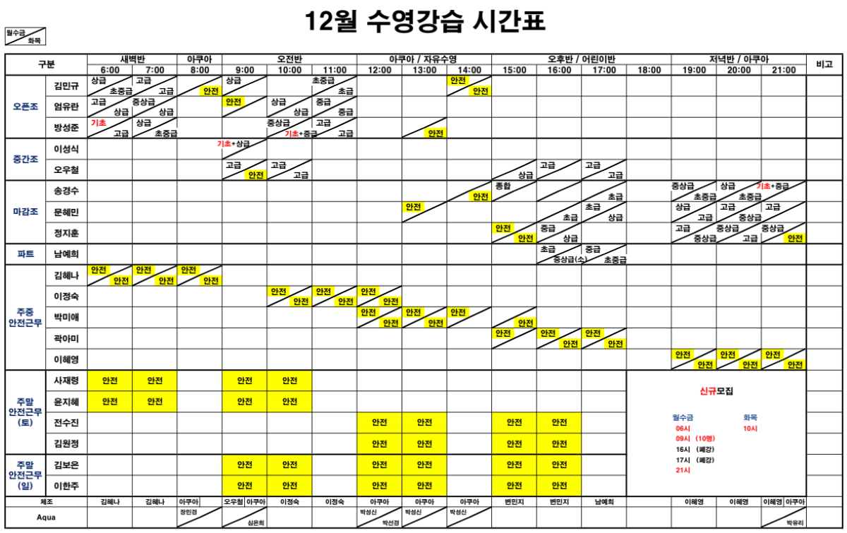 2025년 12월 수영 강습 시간표 및 강사 배정표 이전글, 다음글