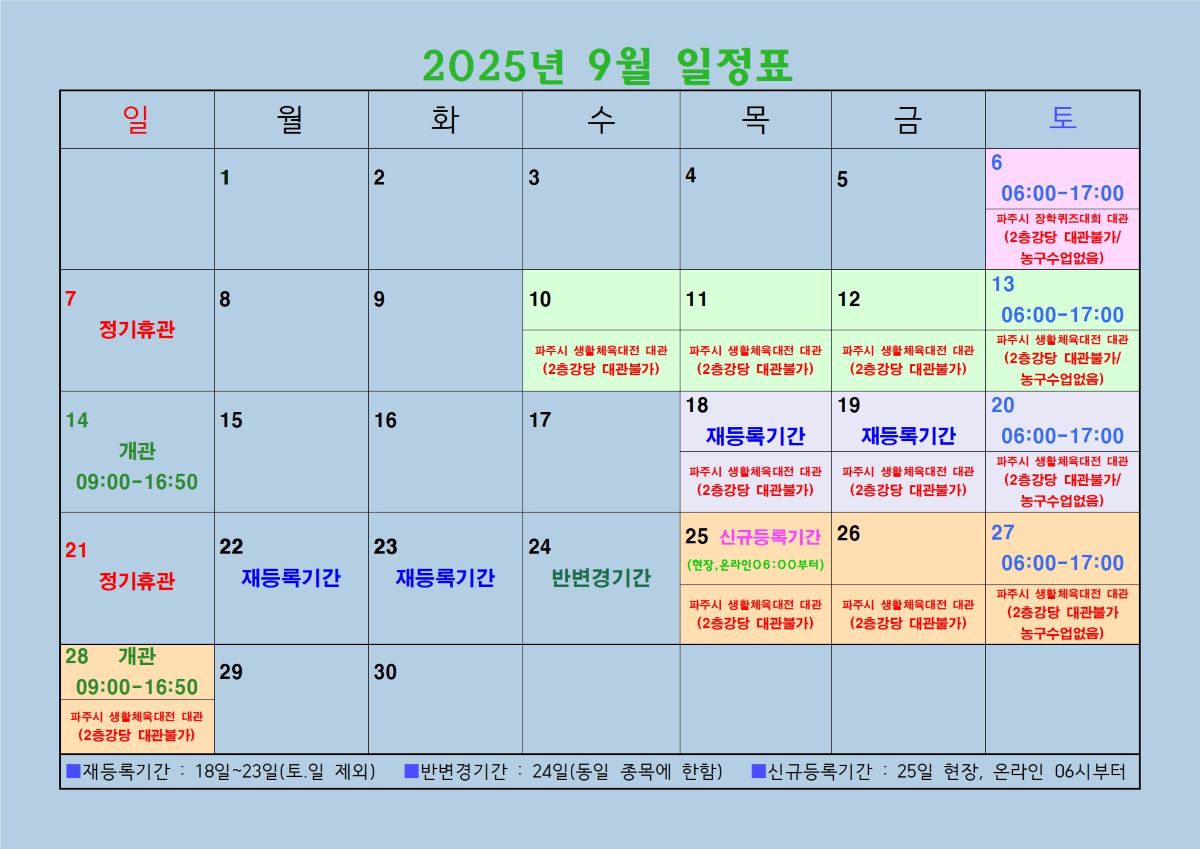 2025년 9월 2층 다목적체육관 일정표