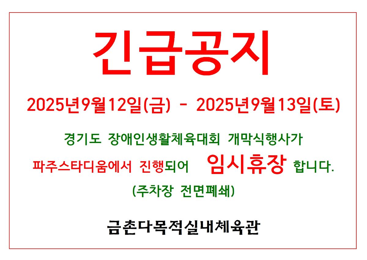 ※긴급공지※ 9월 12일(금)~13일(토) 휴관
