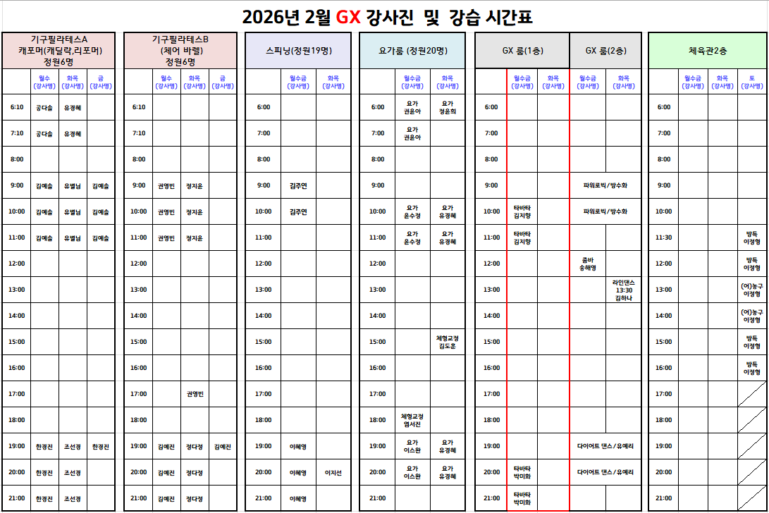 2026년 2월 수영 강습 시간표 및 강사 배정표 이전글, 다음글