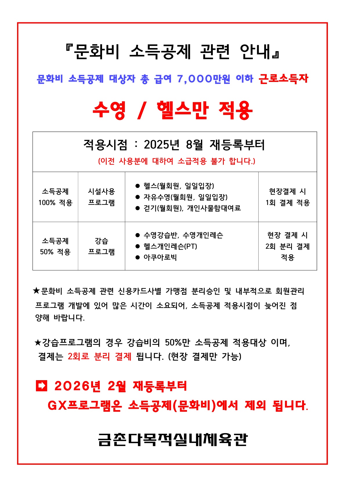 문화비 소득공제 관련 안내 *수영/헬스만 적용