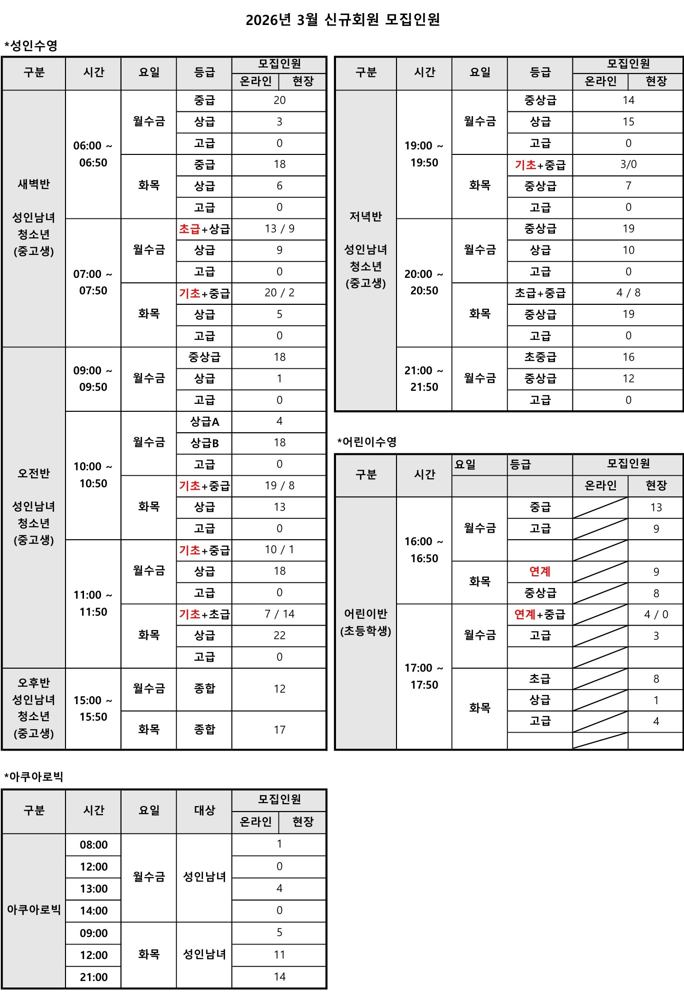 | 이전글 | 2026년 3월 수영 강습 시간표 및 강사 배정표 |